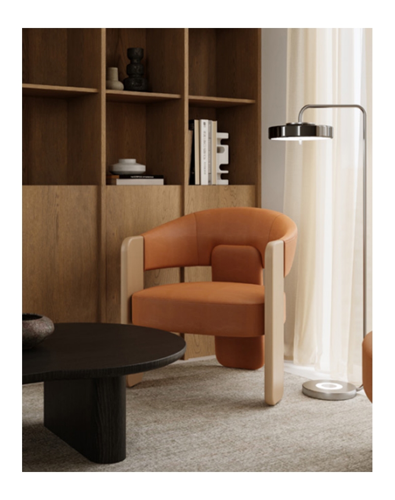 Perfect blend of comfort and style. This contemporary Genuine Leather armchair features a rich, warm tan upholstery and a streamlined North American Ash Wood frame. Distinctive, rounded style, and high-quality materials promise both luxurious seating and timeless appeal.