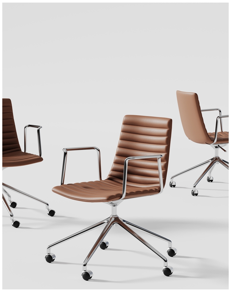 Designstoel gemaakt van hoogwaardig aniline Italiaans leer met een gepolijst aluminium frame. Met in hoogte verstelbaar en geïntegreerd Donati-ligmechanisme. De leerstikstijl brengt de luxueuze executive look en feel van de stoel naar voren.